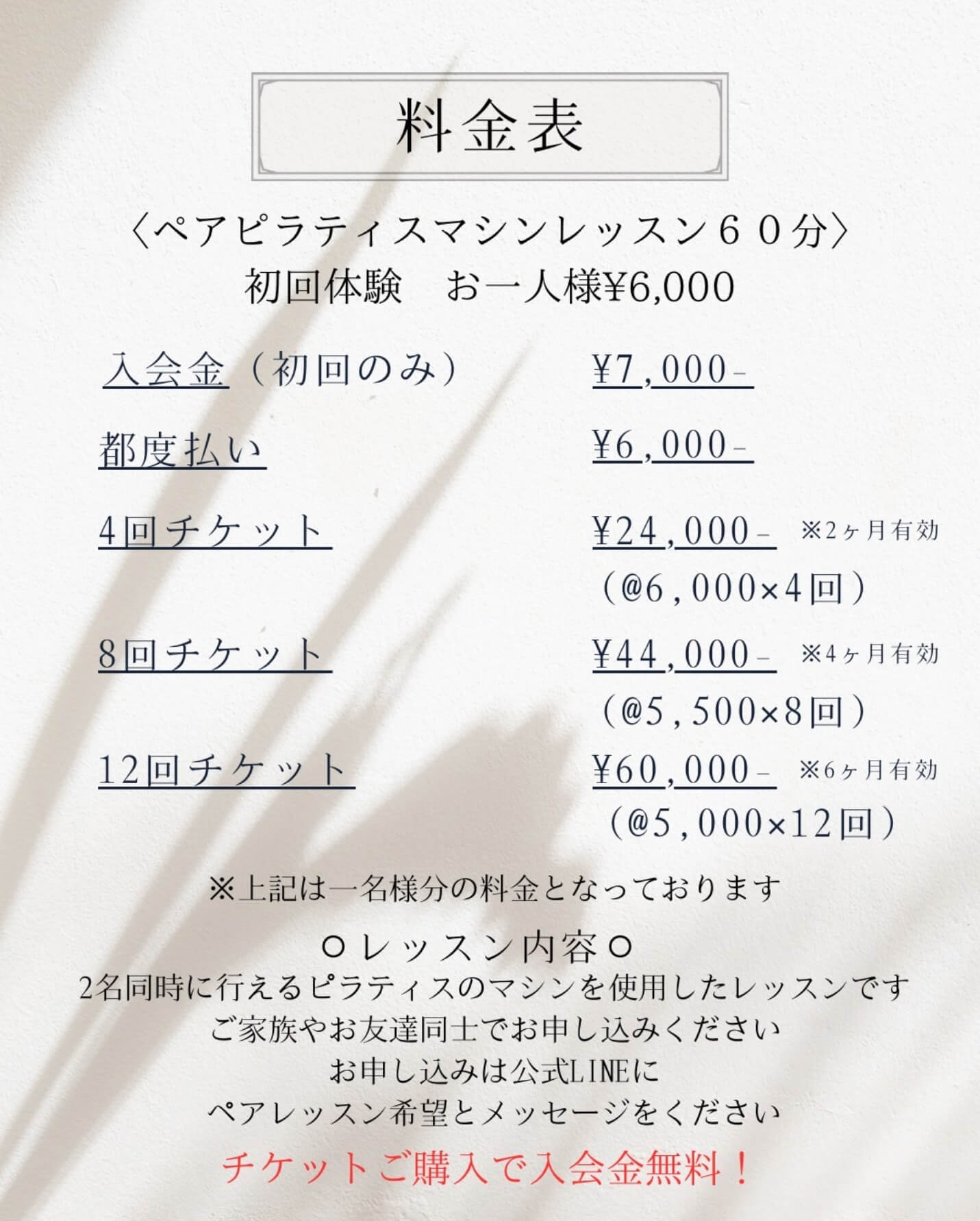 ご家族や友人同士で参加できる、ピラティスマシンを使った本格レッスン。