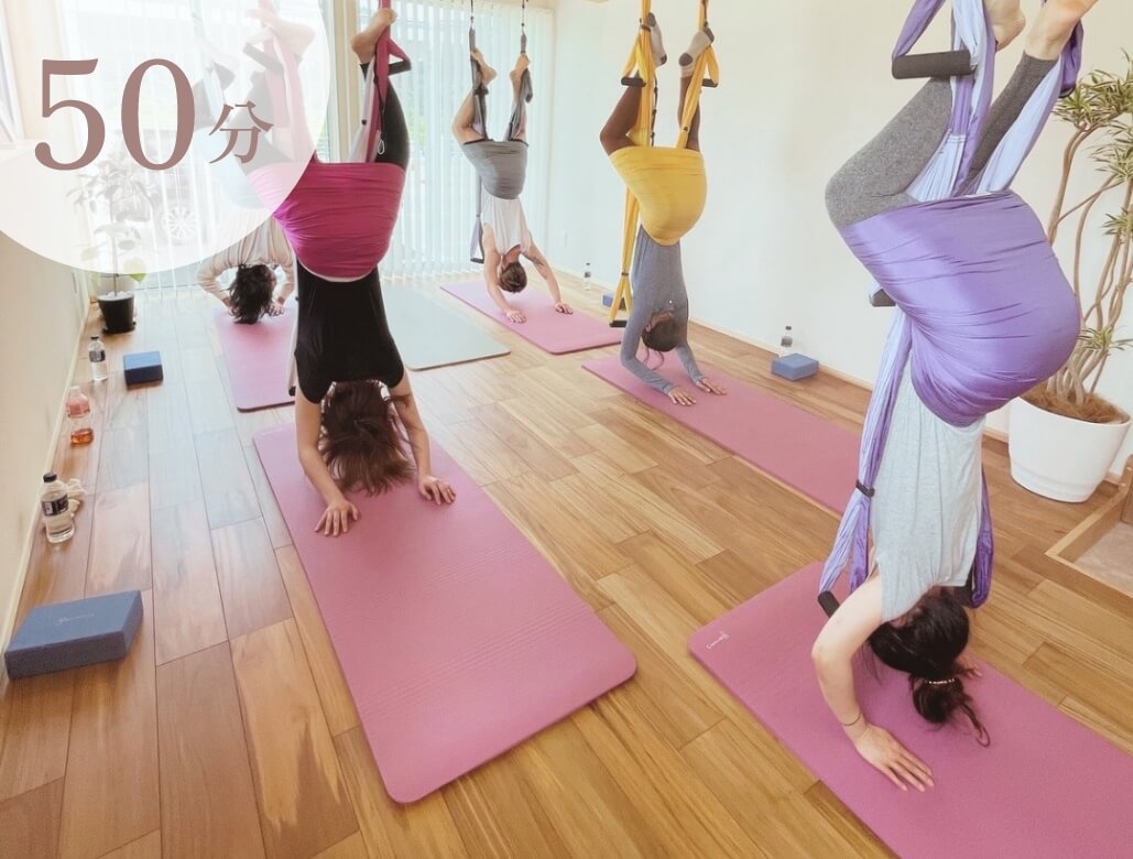 空中エクササイズで体幹・柔軟性・引き締め効果を楽しみながら体験。