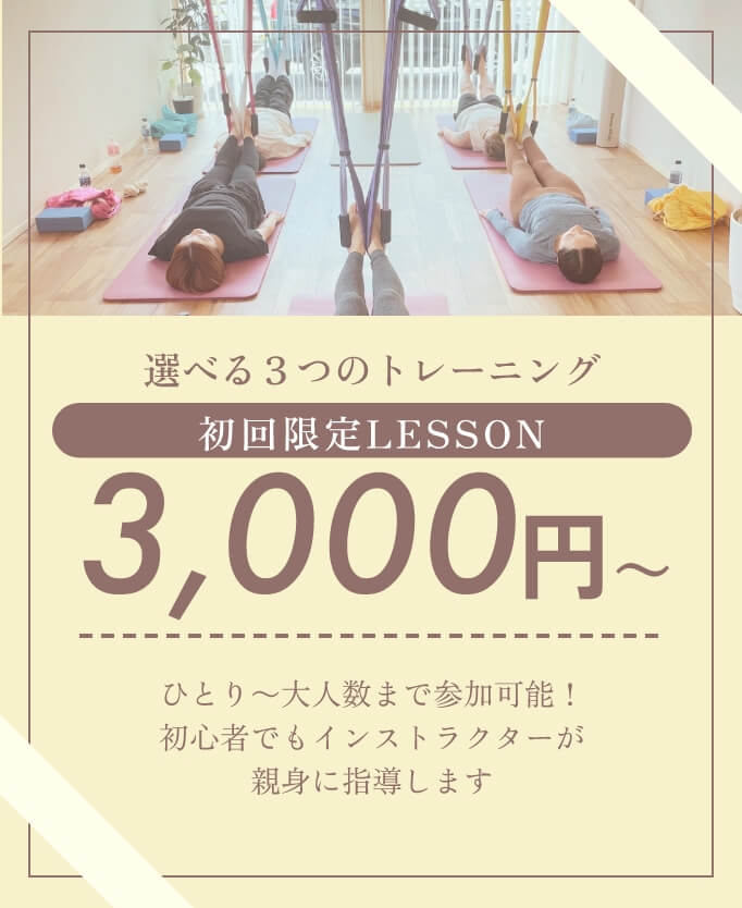身体の状態に合わせて、ピラティス・シルクサスペンション・加圧トレーニングを組み合わせるマンツーマンの完全オーダーメイドレッスン。